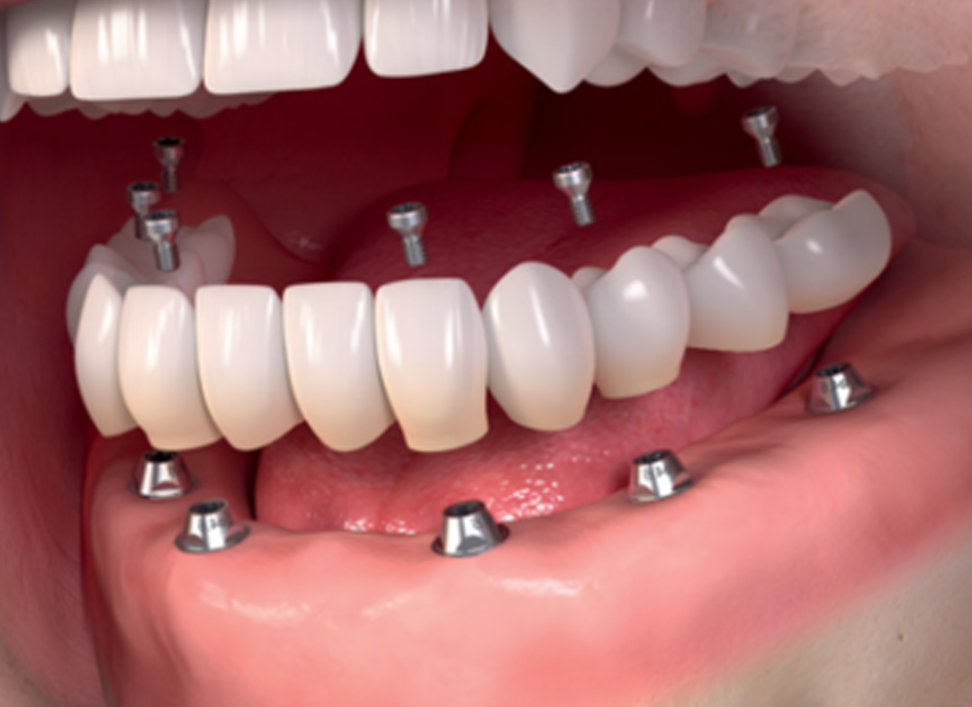 Procedimento que utiliza prótese dentária completa das arcadas superior e/ou inferior, fixada por um determinado número de implantes. Prótese é instalada em até 48h após a cirurgia.